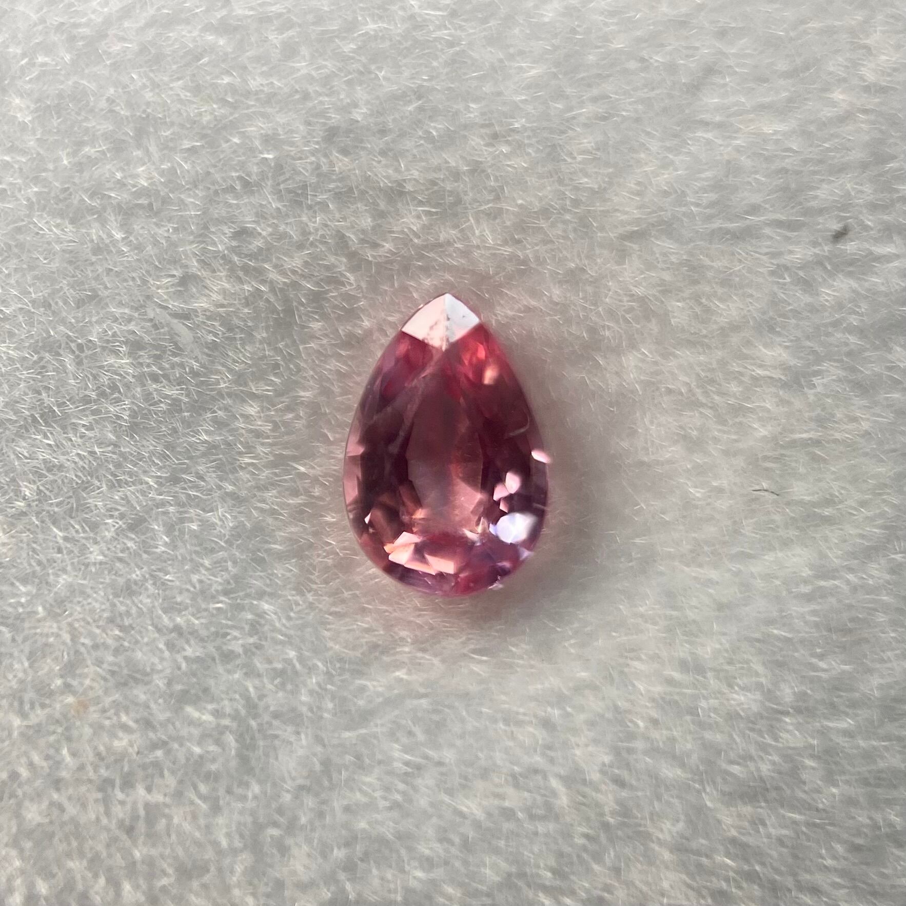 可愛らしくもどこか洗練された美しさを持つ、ペアシェイプカットのピンクサファイアです。