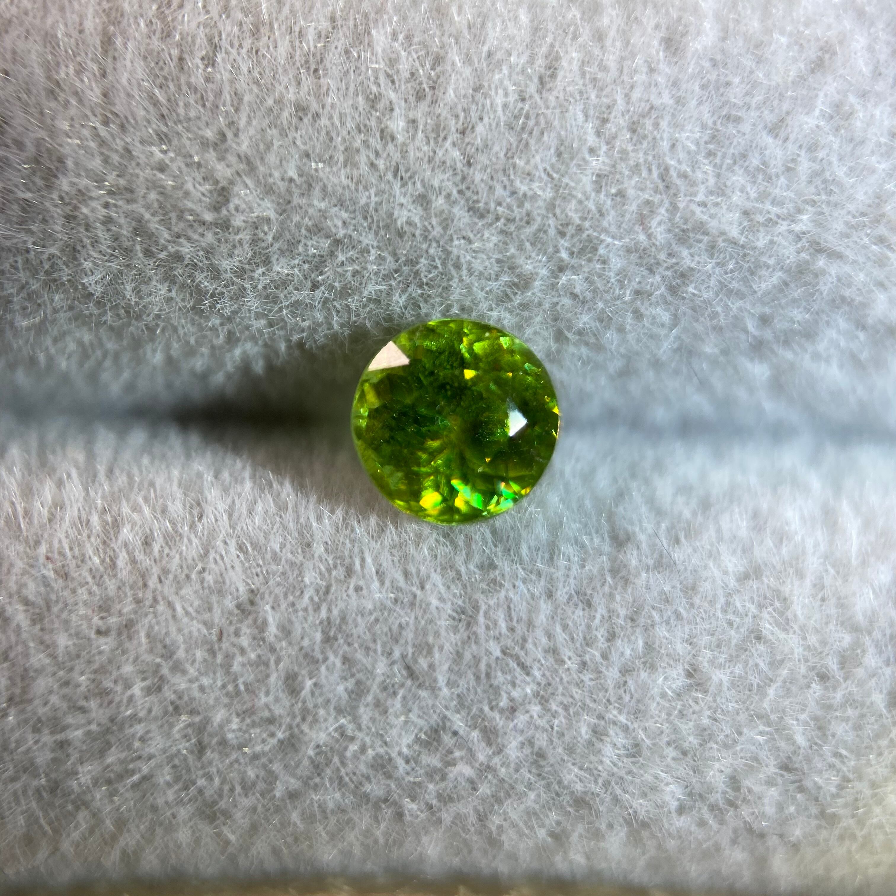 深みのあるオリーブグリーンからキラキラ光る輝きは、私が出会ったスフェーンの中でも心奪われる逸品です。